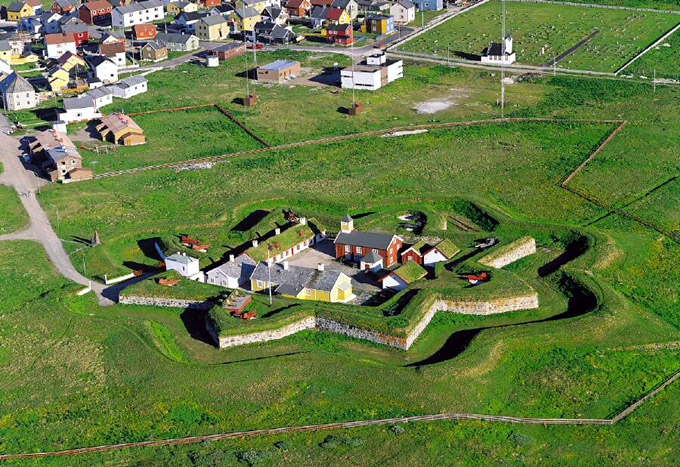 The rooves of Vardøhus' older interior buildings seem delightfully fluffy with sod. |