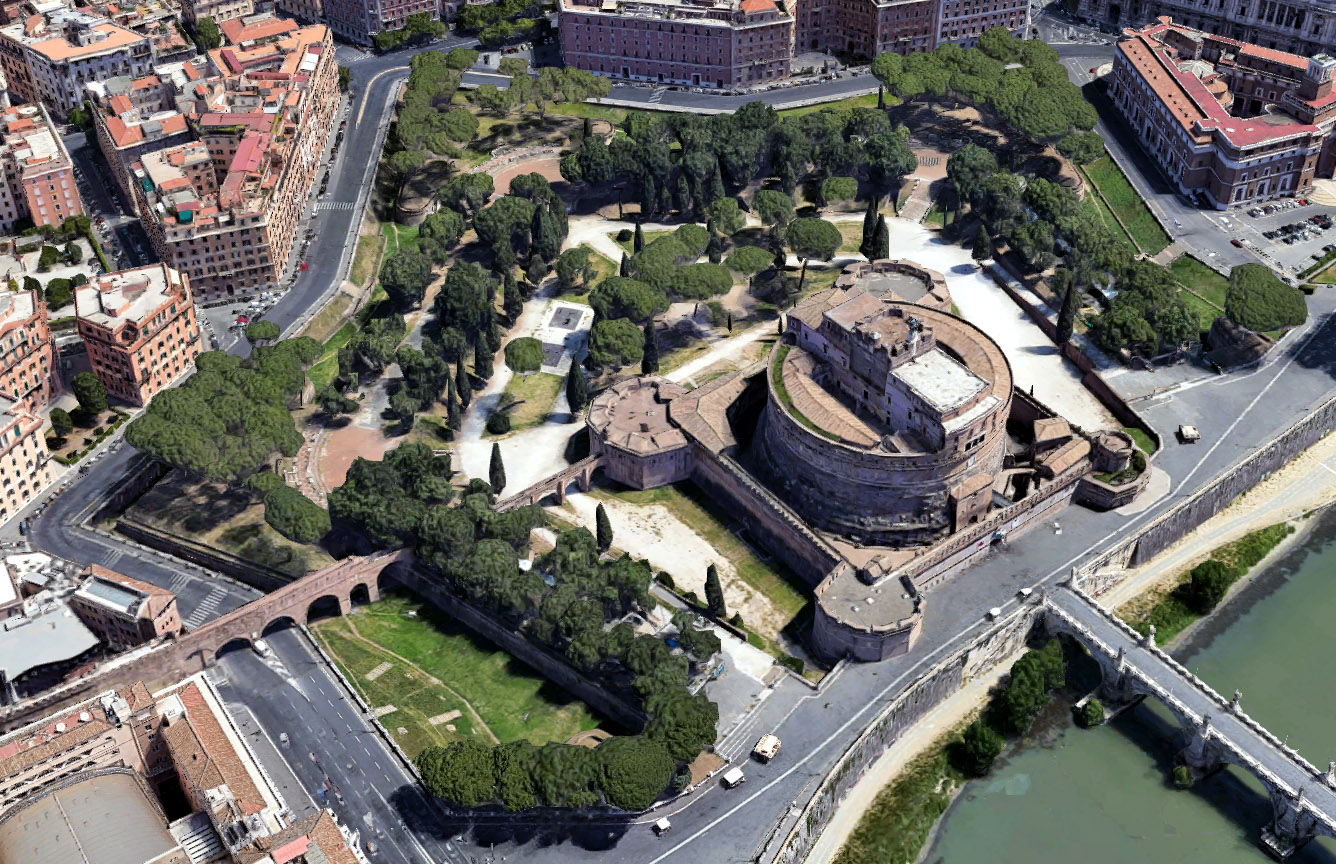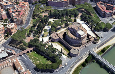 The present visage of Hadrian's Mausoleum, also known as Castel Sant'Angelo, anchoring a corner of the Vatican. |