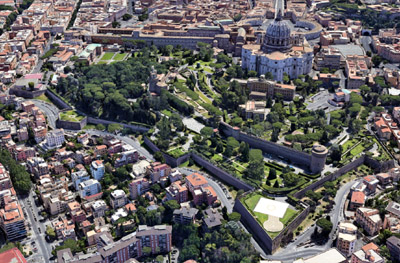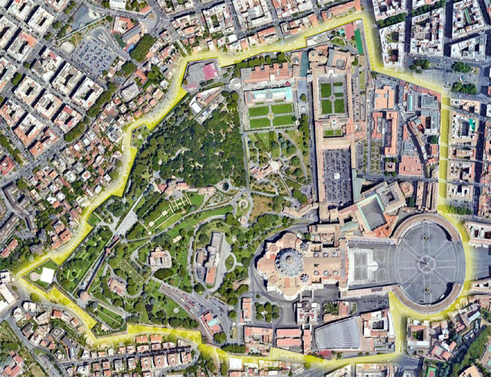 The Vatican today. At the lower left, one can see remnants of the Leonine Wall inside Pius IV's starfort walls. |