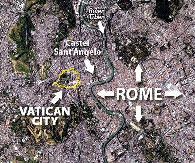 Though Napoleon III (1808-1873) was a captive of the Prussians and France was essentially rudderless, there was an Italian fear that vast Napoleonic columns would march on Rome, bent on restoring the old, Papal order. A new enthusiasm for fortification gripped the city authorities, but the ever-increasing range and accuracy of artillery had rendered the starfort obsolete. In 1877 ground was broken for the late-19th-century European version of the starfort to defend Rome: A ring of artillery forts. That subject is beyond the scope of a page about the Vatican, however, so you can learn more about it at Starforts.com's Fortifications of Rome page. Today, though being surrounded by world-class starfortery, it's easier to get into the Vatican than a major American airport. Pass through a metal detector, show some ID (reportedly a library card will work), and pow, you're hangin' with the Pope. |