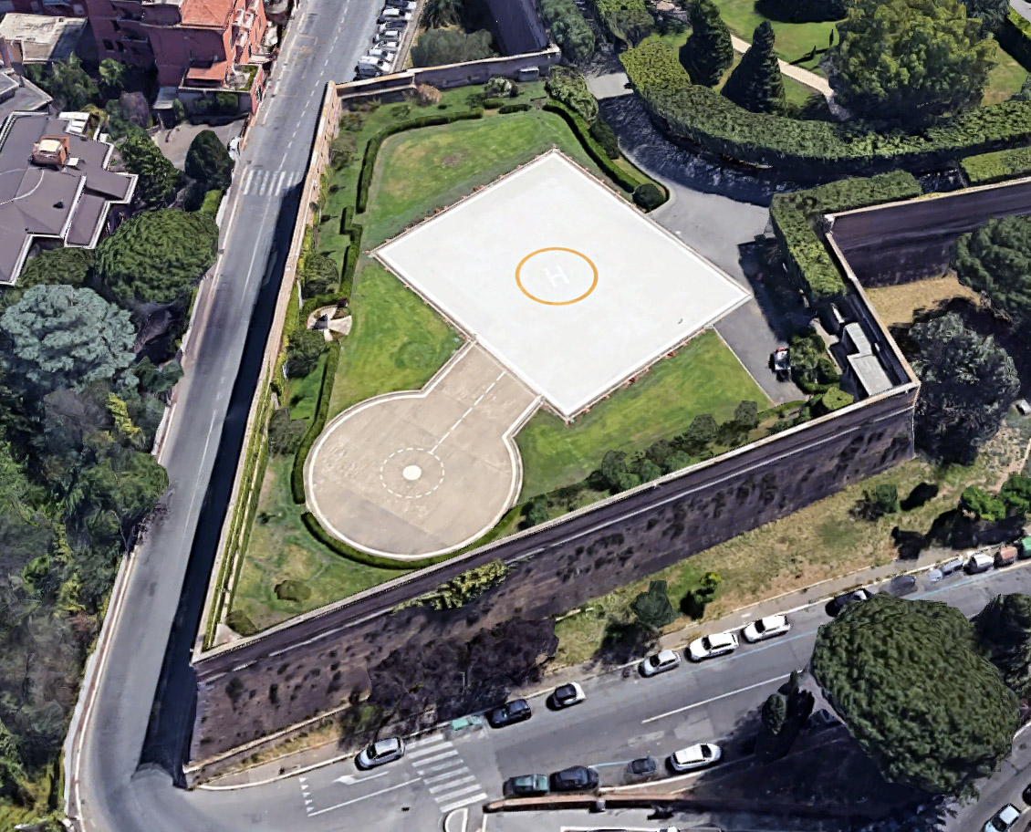A closer look at the Vatican's westernmost bastion, home of the Holy Heliport! Which probably isn't really what it's called, but it should be. |