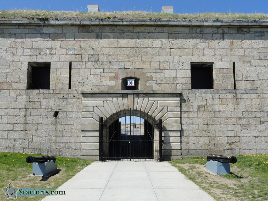 Fort Adams' front gate! At some point each of the buildings in the extended Fort Adams were given an identifying number: In what universe would it seem reasonable to name the fort itself as Building 100??
