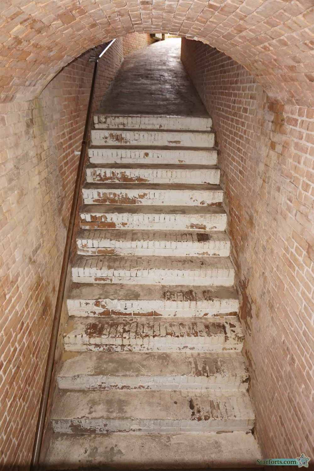 We're going up! No wait we're going down! This is a tricky opening that overlooks this stairway. The opening at the top leads back to the small vestibule area just inside the front gate. Sorry, but we're not going up
