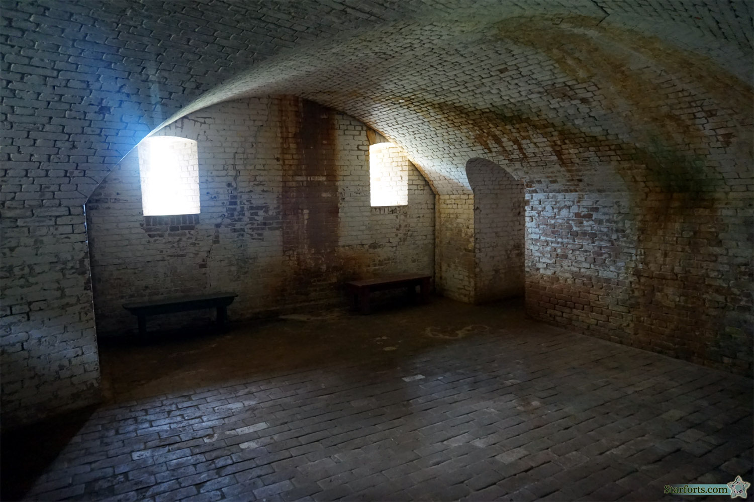 Were this Fort Jefferson, this would be the casemate where Dr. Samuel Mudd cooled his heels after (maybe) participating in Abraham Lincoln's assassination in 1865 (see that cheery place here). But we're in Fort Barrancas, which was not, as far as I've gathered, ever used as a prison. Some of the guys stationed there may have felt like they were in prison, but that was their own fault for joining the military or allowing themselves to be drafted.