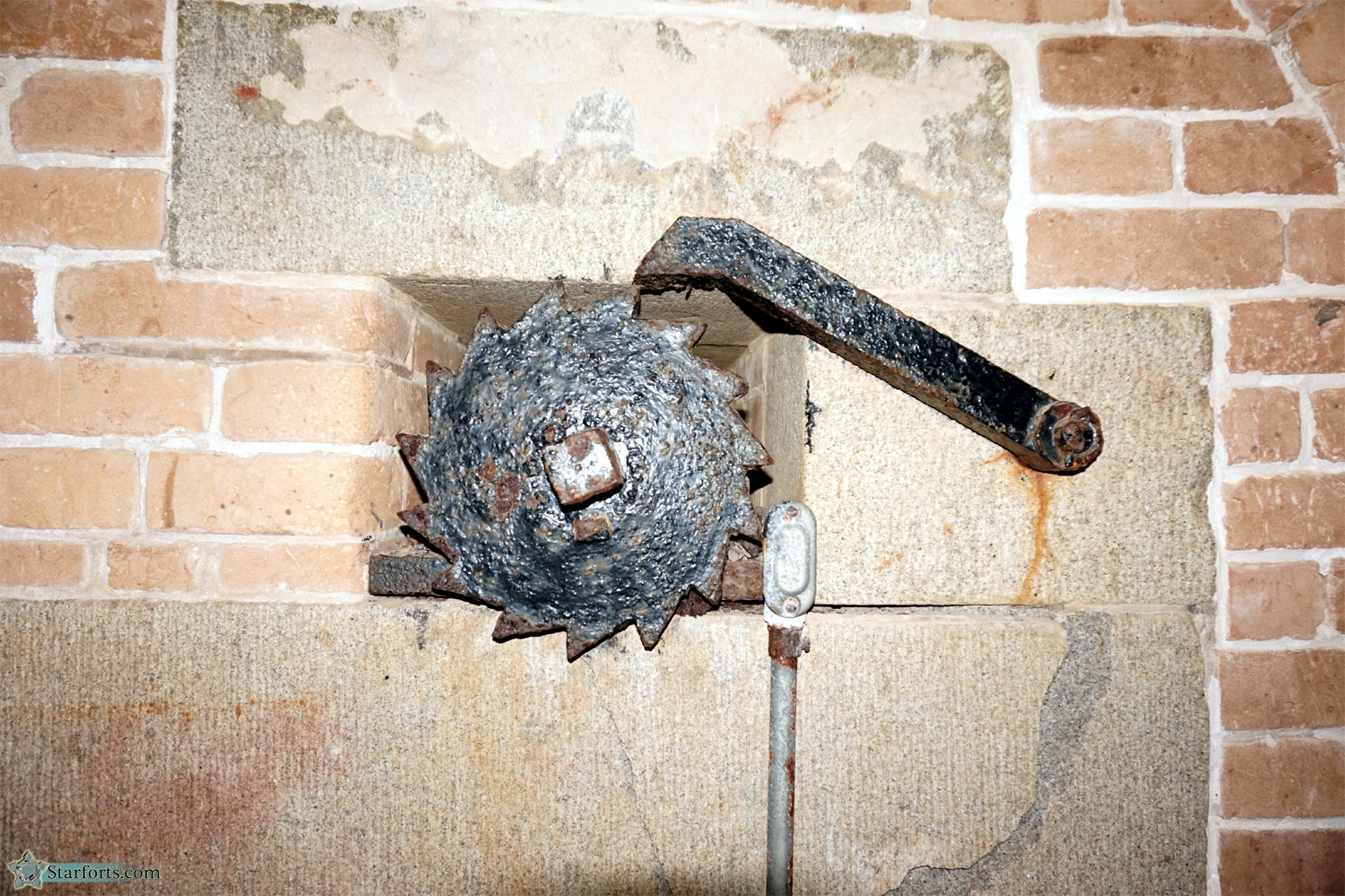 Oo, could this be what's on the inside of those big black screw-things on either side of Fort Barrancas' gate? I wish I could tell you where in the fort this picture was taken, but again, lots and lots of featureless tunnels make it difficult to say...but this sure SEEMS like something that could be used for such a purpose? Assumedly there was some sort of cranking appendage involved.