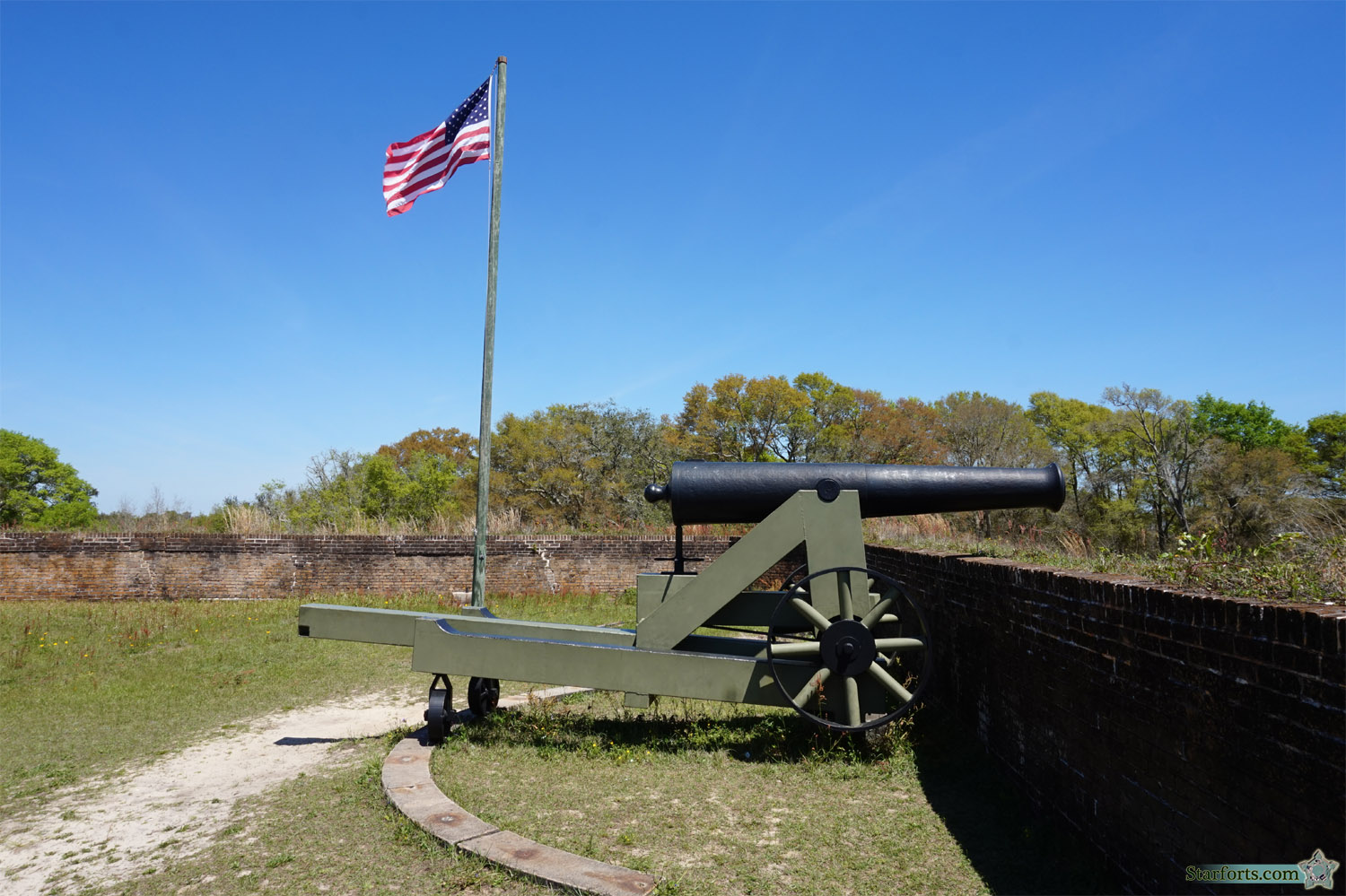 The star of Fort Barrancas' diminutive parade ground is its 32-pounder Seacoast Gun, a relatively common sight at America's starforts! I will cautiously identify this particular one as a Model 1845. Our fort mounted fourteen of these beasts, all up here en barbette, that bore on the entrance to Pensacola Bay.