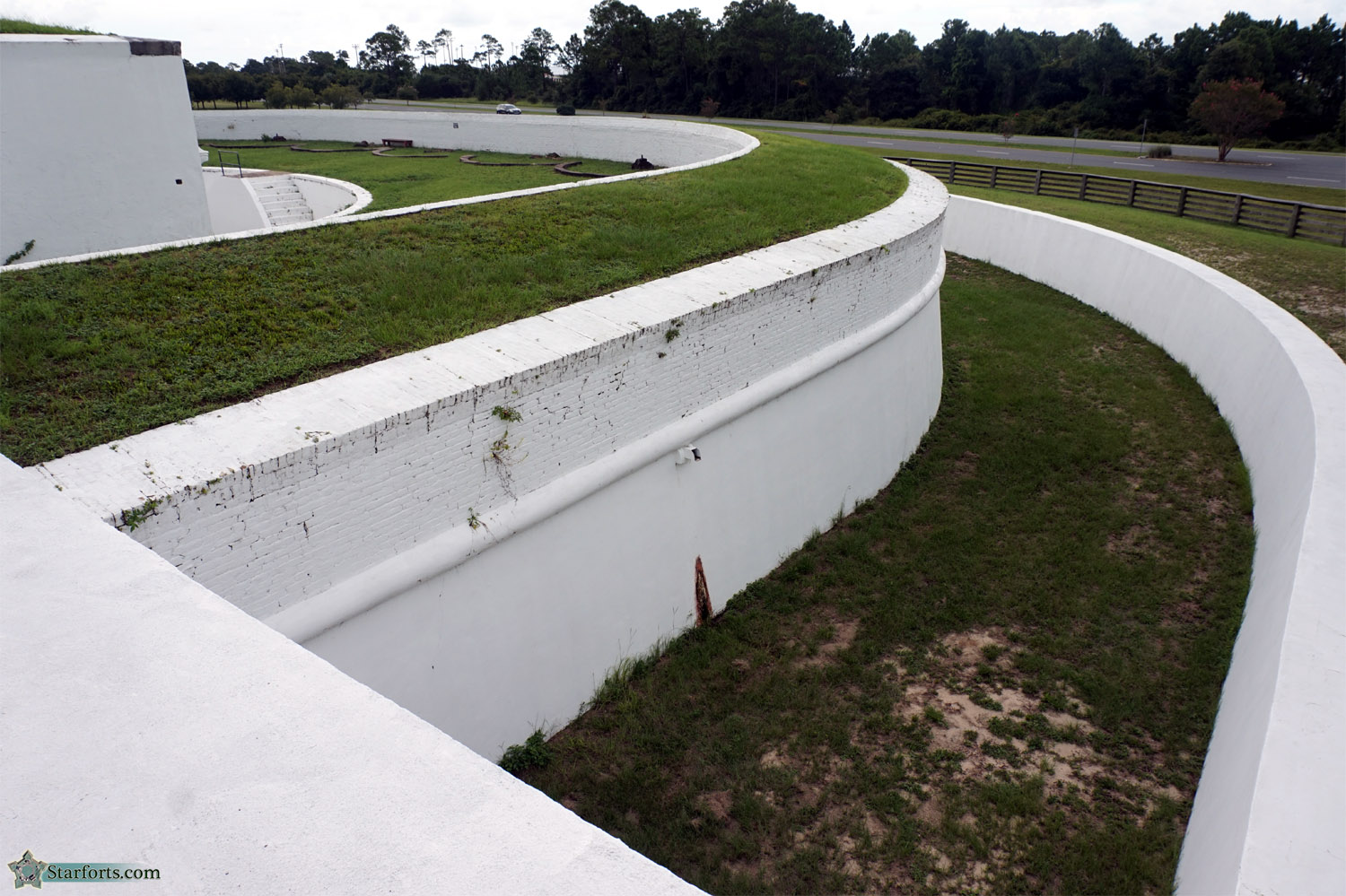 I did a lot of careful clambering and snooping to find the Batería's secret nooks and crannies, but...it doesn't have any secret nooks or crannies. What one sees is what one gets. The ditch around the front of the Batería would have been a substantial obstacle for attackers, if it weren't totally open on one side! Assumedly it wasn't open on one side when it was built. Or am I giving the Spanish too much credit? "Heh heh, no one will ever think to look on this side of the ditch, eh, Paco?"