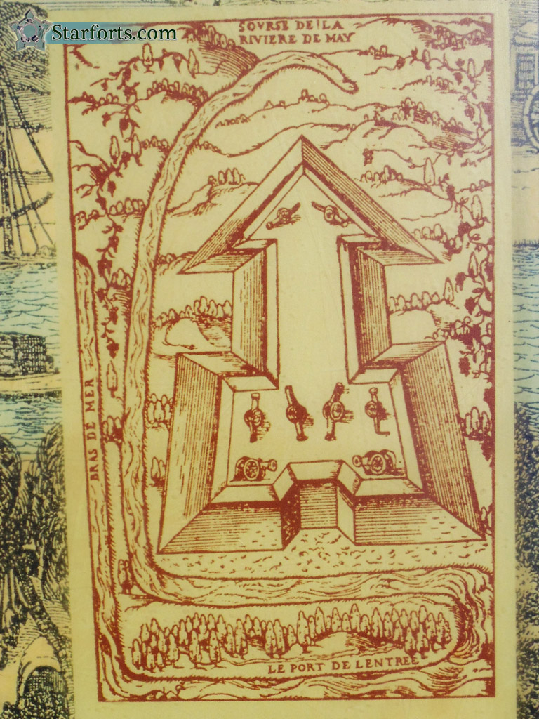 A settler at Fort Caroline drew this image in 1564: It's thought to be the first print of a European structure to be built in the New World! As you can see, it doesn't really resemble the Fort Caroline that we have today, though the three-pointedness of it is certainly in evidence.