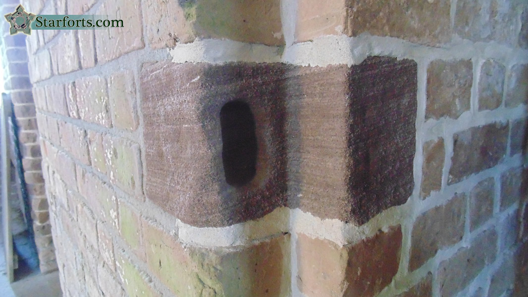 I've noticed this in a number of starforts I've visited: Casemates are made of brick, but different stones were placed in the wall to support doorways, as it would be too easy to undermine a locked door whose lock stuck into a brick. These stones, however, always seem to be sandstone, which is easily worked, but crumbly and not what I would use to secure a door! Granite can morph into sandstone over time, but usually only under extreme pressure or heat conditions. Could the dankness of a casemate over the period of a century be considered extreme heat conditions?