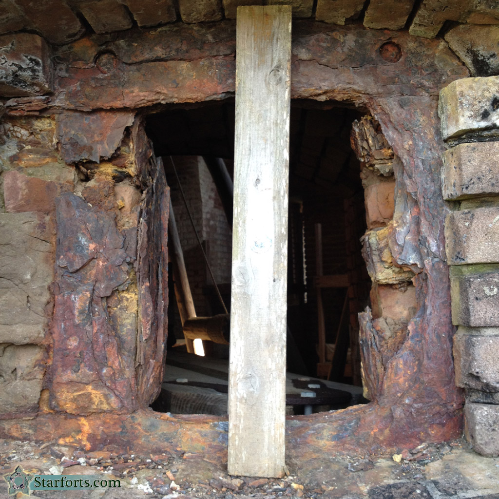 Hmmm. The East Bastion, which is the one with all the cool stuff in it. Is this impenetrable security, designed to keep me out of the locked bastion, or the only thing that's holding the wall up? Regardless, one can see that the gun ports were once covered with iron doors.