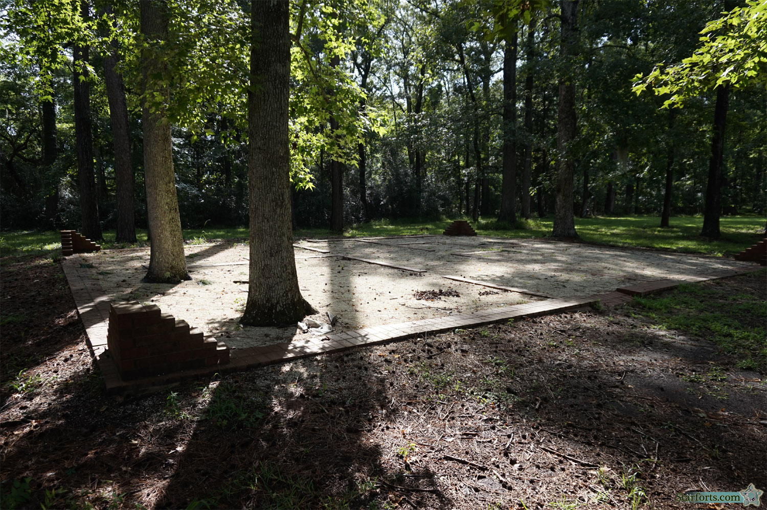 The modernly-enhanced foundation of what must have been a nice house. The nearby descriptive sign is