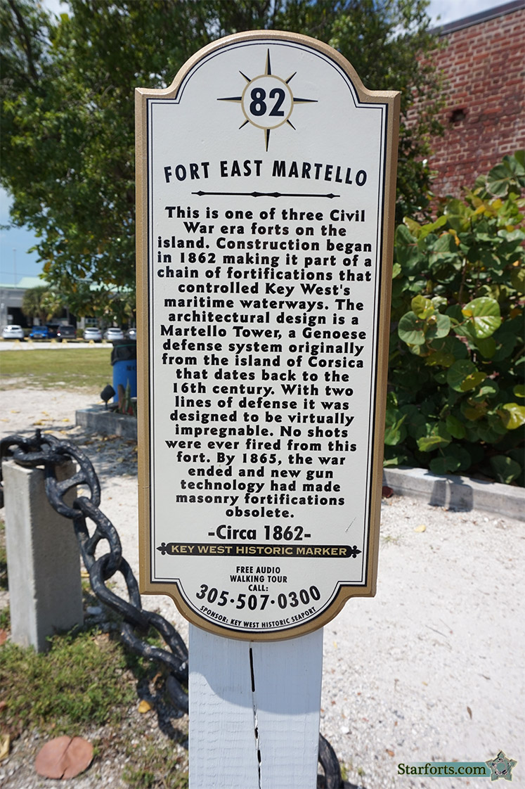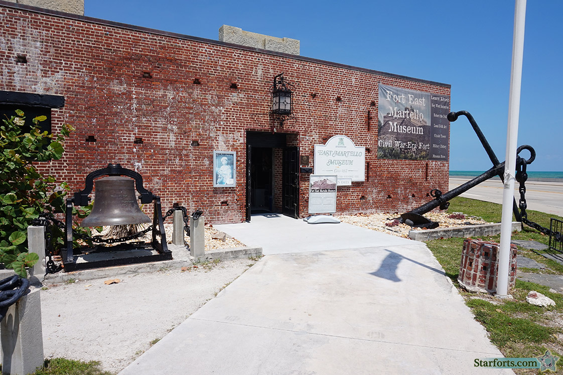 The entrance to East Martello Museum. The bell was a gift from someone by the name of Waddell to the Key West Fire Department in 1887. There's also a Waddell Avenue on Key West, so this Waddell person surely must have been someone of substance, but how much substance I am unable to tell you at this time. Note the picture of Robert the Doll right there to the left of the entrance! Robert may be the largest international attraction to this museum. There is also a sign titled Fort East Martello near the entrance: Click the link to see the sign, if you like to read signs. |