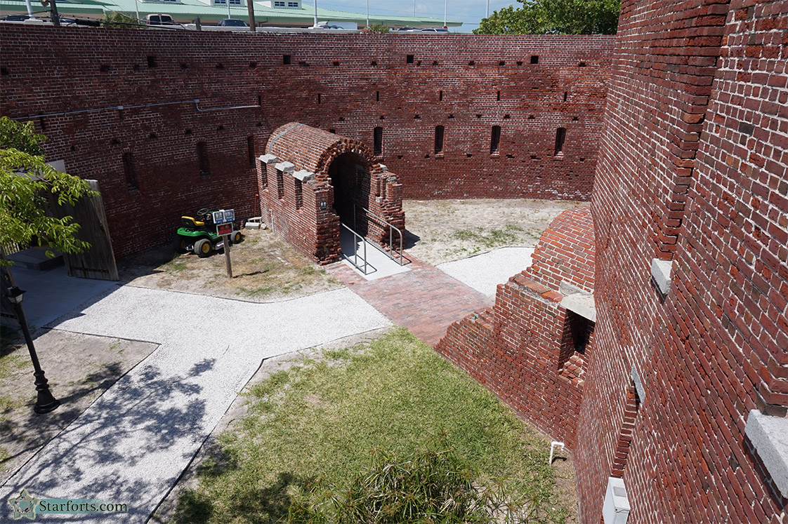 Ascending the tower via a modern stairwell along it's side, we see what's left of the tunnel that connected the tower with the Escarpment, essentially a rifle gallery that surrounded the tower to the south.
