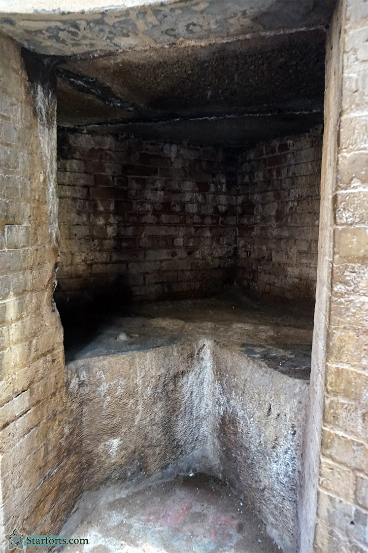 Heading up the staircase to the tower's roof, there is this little crawlspace...assumedly for cowering inside when under bombardment, but also perhaps to make way for ascending or descending officers? Or in which one might store powder. Why not? Gotta keep your powder somewhere.