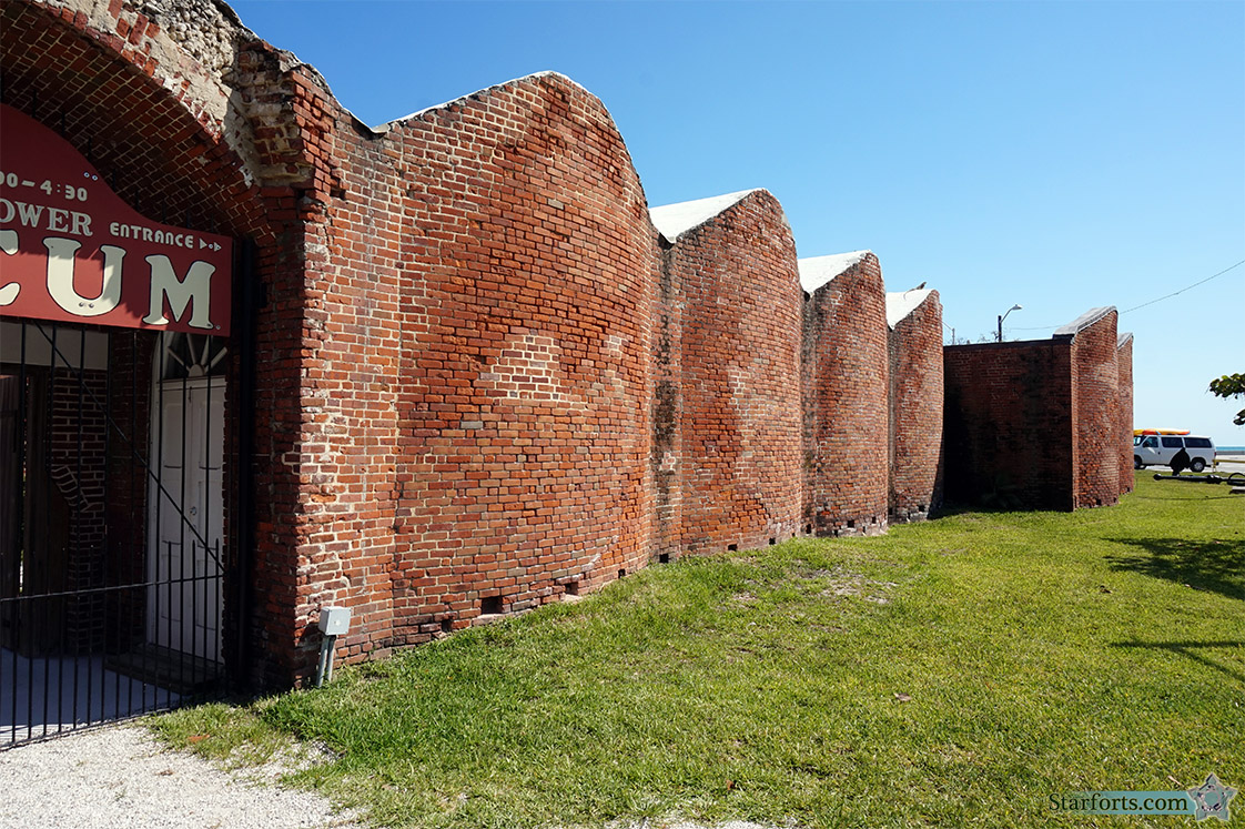 While the walls facing the direction from whence imagined danger would come (which was the sea) are flat, the walls of the escarpment, protecting the fort's landward approaches, are humpy. If an arch is the strongest building structure in the vertical, surely such a hump serves much the same function in the horizontal? If it's pointing in the right direction, that is.