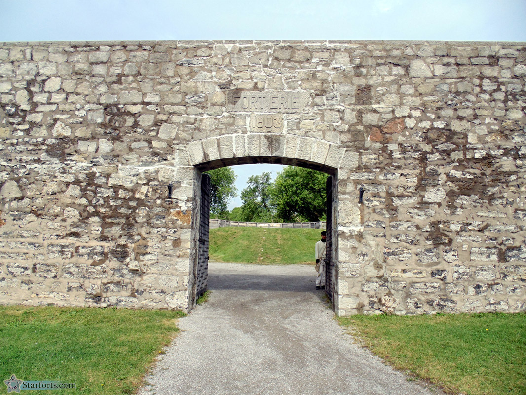 Above the portal we see FORT ERIE 1803, which is slightly misleading. This final iteration of Fort Erie was designed in 1803, but construction didn't begin until 1805, and the fort wasn't complete when the War of 1812 rolled across the Niagara River. Whomever was in charge of carving that date likely figured that an earlier date is always more impressive than a strictly accurate date. And what is that we see peeping out of the gate? We'll look into that mystery in a wee bit.