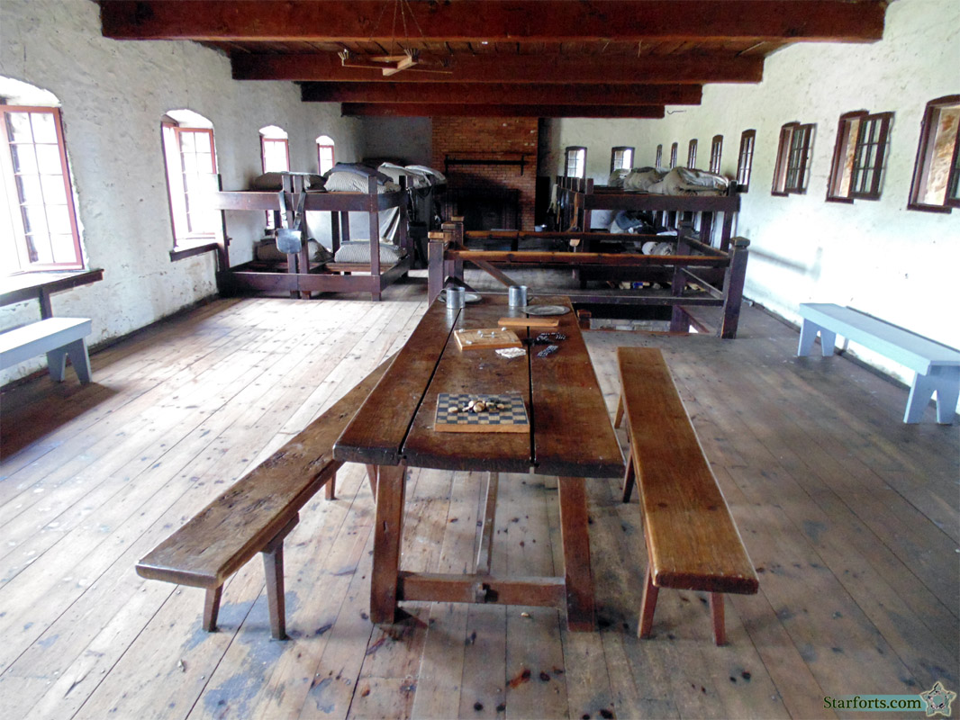 Perhaps the upper level was for officers. Because while these are by no means plushy digs, there are at least