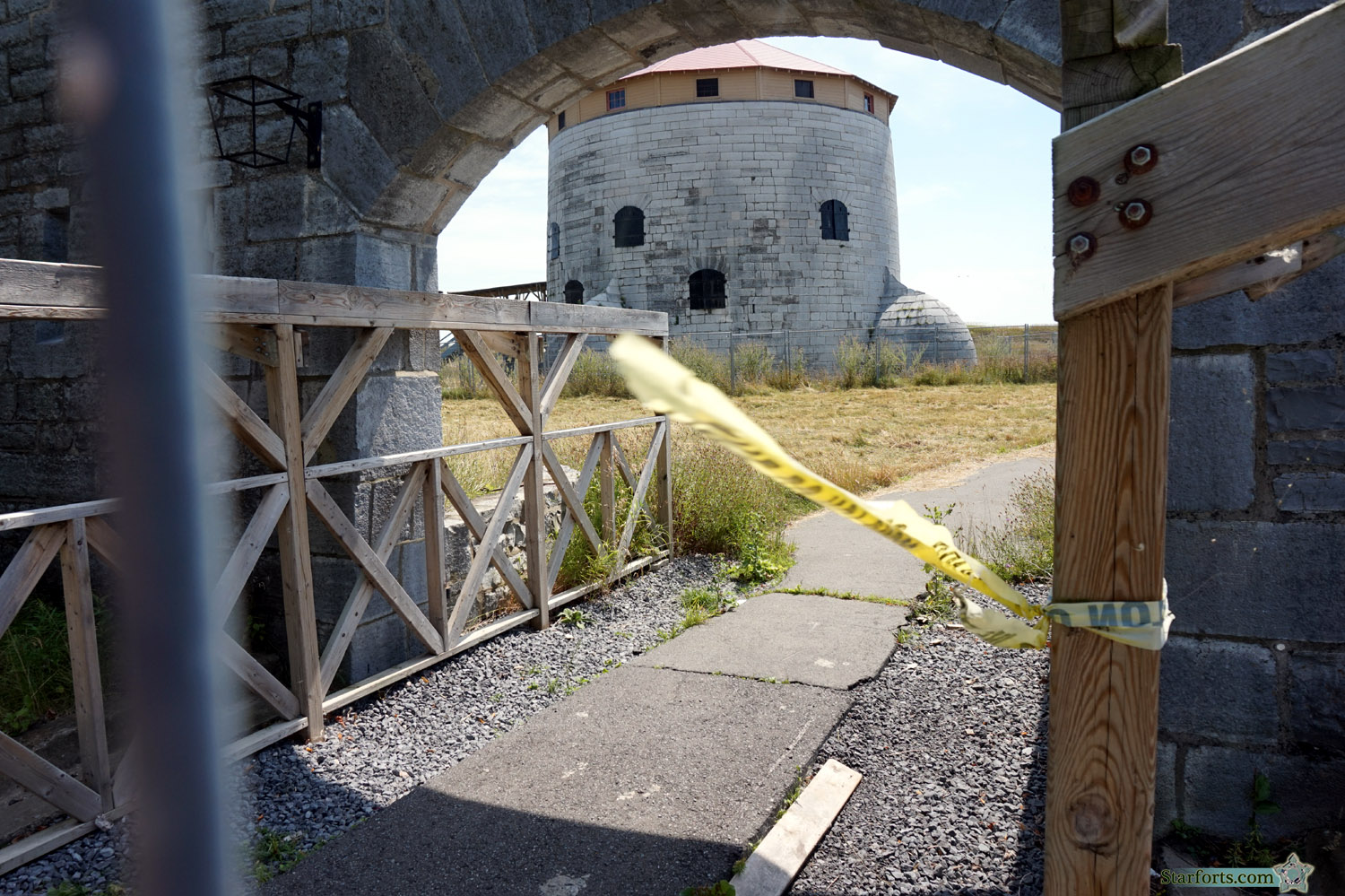 Gates 'n' caution tape, preventing the casual visitor from access to that scrumptious Martello Tower in there.