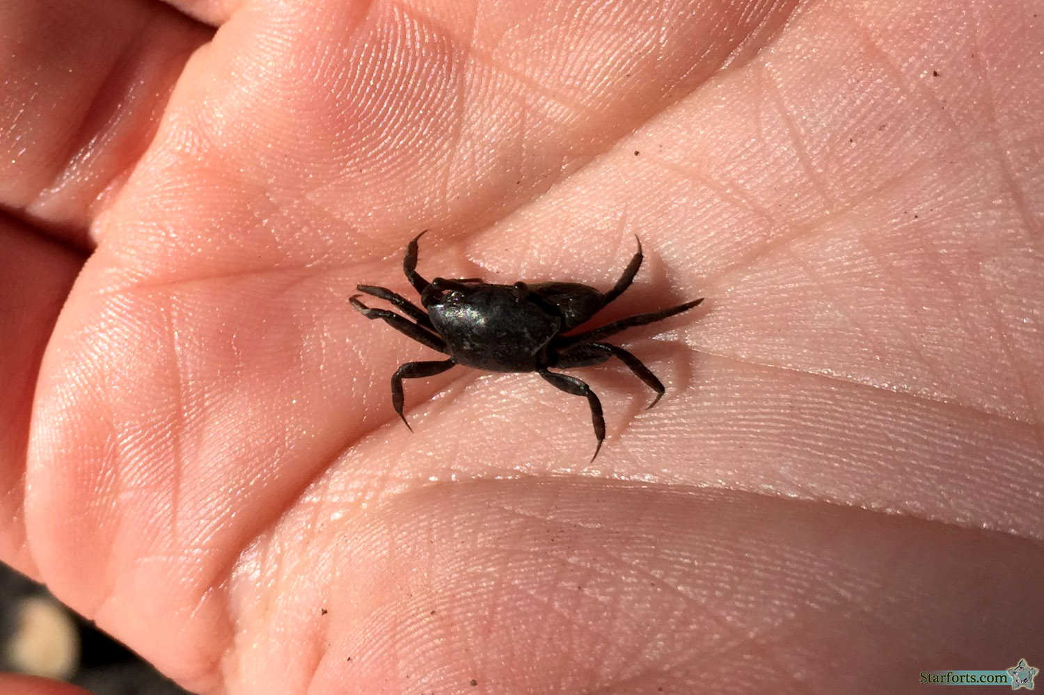 In our ongoing effort to carefully include all wildlife found in and around visited starforts, we bring you what I will cautiously identify as a female fiddler crab, of which vast, scurrying hordes delightfully fled from our presence in the brush next to the river. My niece would have been more than happy to stay right there for the remainder of our trip, picking up and loving each and every crab, but we had to go and feed another form of starfort wildlife, vicious biting flies, with our blood.