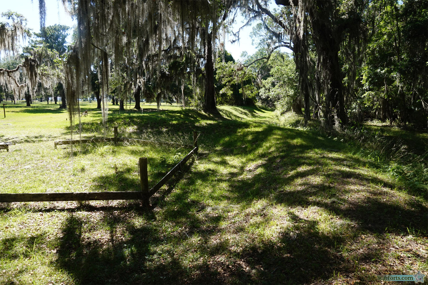 Looking along Fort Frederica's outer northern wall. Some of these earthworks