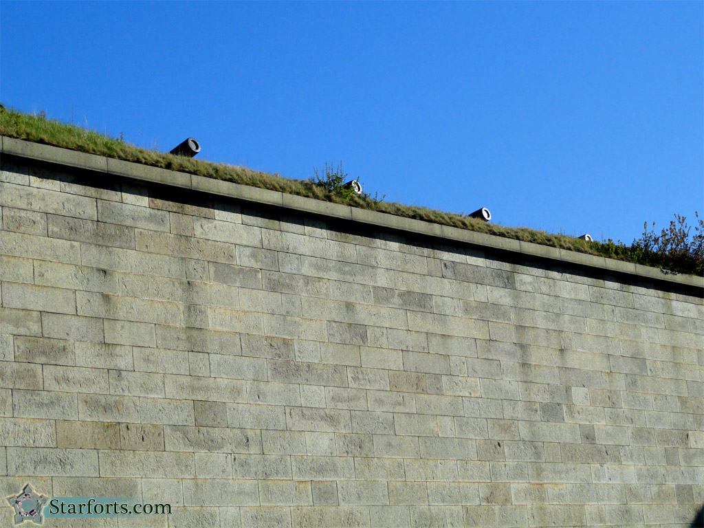 Here's what the northwest wall looks like from above. This would have been the original configuration for the fort's guns when it was first built. Today, there are mounts for 14 or 15 more modern guns (most likely those good ol' Rodmans) along Fort Independence's walls and bastions.
