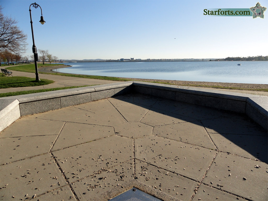 Probably because they felt so bad about imprisoning two innocent Rodman Guns, the city of Boston built an incredibly inspired playground next to Fort Independence, in the shape of a starfort!!! Above is the view from the playground's southeastern bastion.