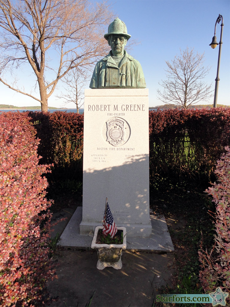 Just to the south of the fort is another very nice, if completely unrelated to Fort Independence, monument. It is dedicated to Boston firefighter Robert M. Greene, who died in the line of duty on November 27, 1978.