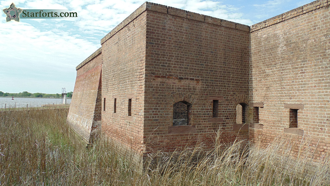 Fort James Jackson has just about all of the defensive aspects of any starfort, just on a much smaller scale. Here's the opening for a flanking gun, protecting the fort's main gate.