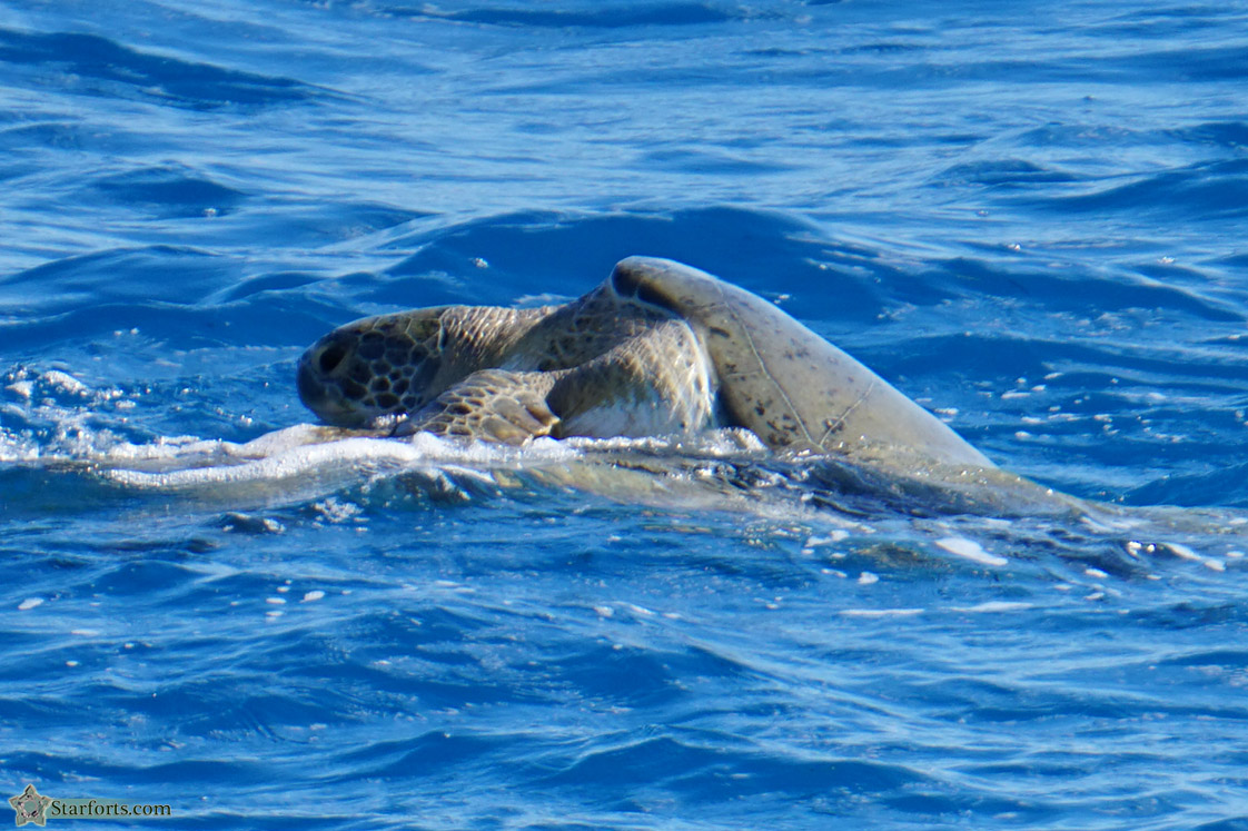 There's not a whole lot to see during this voyage, other than endless beautiful sea and blue blue sky...but occasionally a sea turtle will be laboriously flopping along nearby in the open ocean! A two hour voyage seems fairly lengthy to my landlubbin' ass, but just imagine how long it takes this guy/girl to get anywhere!