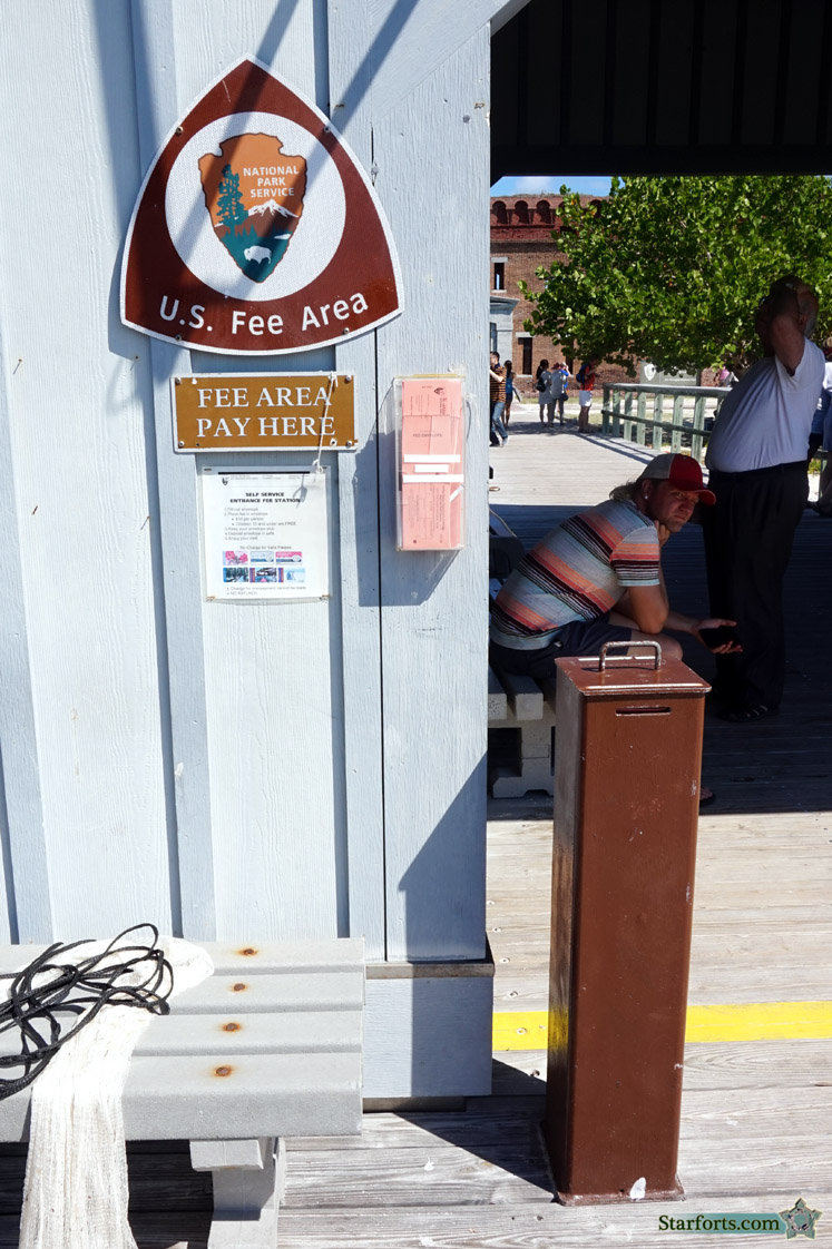 The fee for visiting Dry Tortugas National Park is $15 per person, which pass is good for a week. Fortunately, this fee had been included in what I had paid for the boat trip...although I'm sure I would have been more than welcome to pay the park again! This self-serve fee station would be how folks who arrived on their own watercraft would ender the park. At least the honest ones.