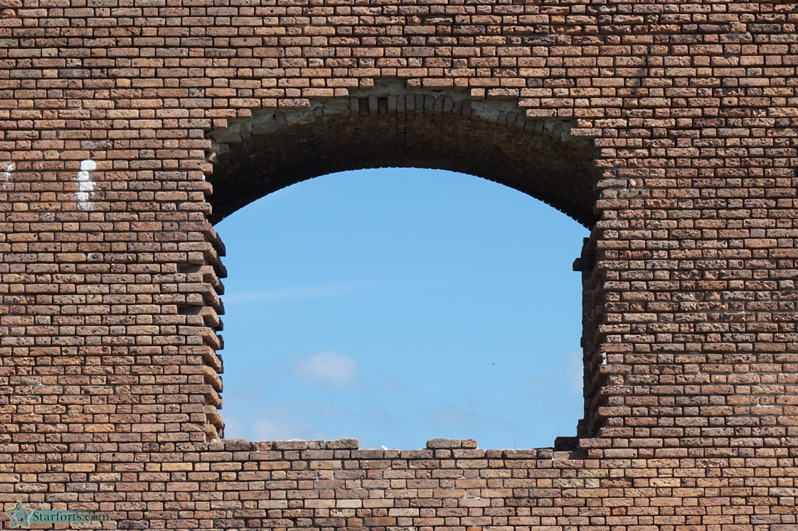 One of the first things that struck me as I viewed Fort Jefferson's walls was this phenomenon: Giant, untidily gaping holes where the fort's second-tier firing embrasures should be. Was some angry god jealous of the ingenious innovation of Totten Shutters, and slaked his fury by individually (and somewhat surgically) bashing in each embrasure?