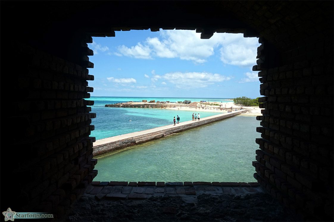 There is no dearth of photographic opportunity as one strolls along Fort Jefferson's second tier of casemates...the gaping maw of each and every uninstalled gun embrasure perfectly frames a breathtaking slice of the unbelievably gorgeous Gulf of Mexico. Suffice it to say, I took lots of pictures. This one looks out the northeast wall toward the ruins of the North Coaling Dock.