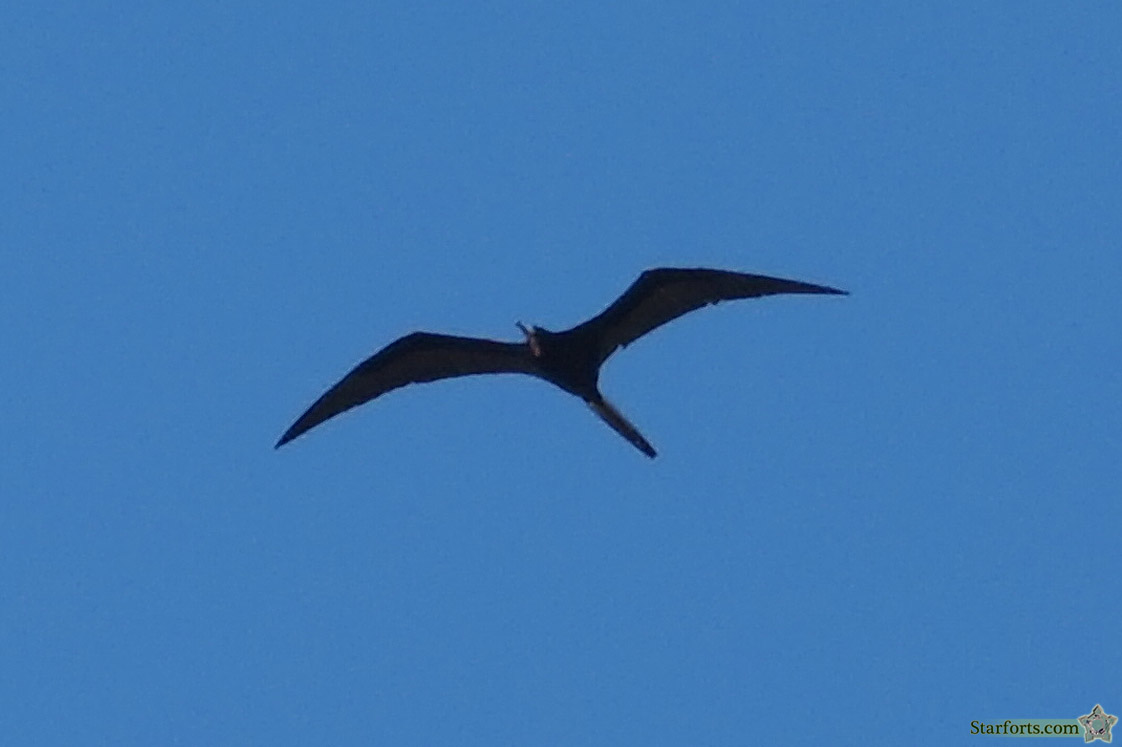 Never having seen one before, but having read countless novels about early 19th century British naval exploits, I was able to identify this Frigate Bird! Frigate Birds can sail on the wind for weeks on end, never alighting on water. They eat squid and fish that are driven to the surface by larger predators, and were also known as Man-o-War Birds by English mariners.
