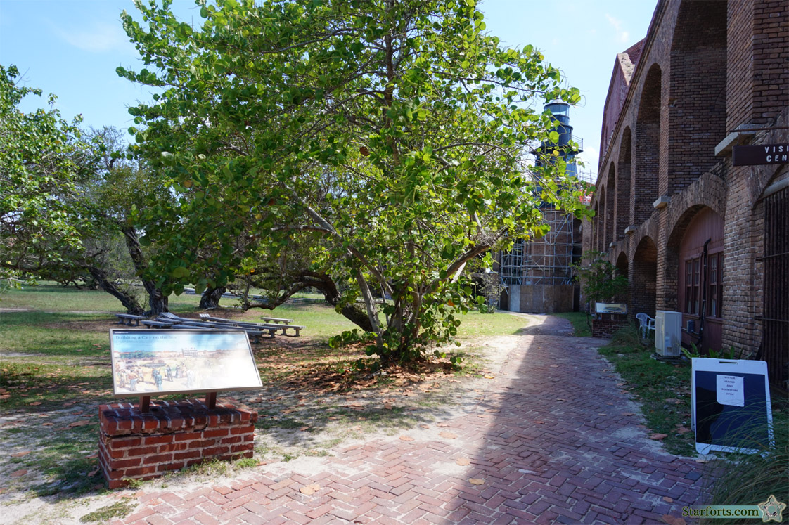 What one sees if one were to turn to the right upon entering the fort! That's a tiny Visitor's Center directly on the right, which contains a couple of displays and a teeny gift shop. The sign afront is