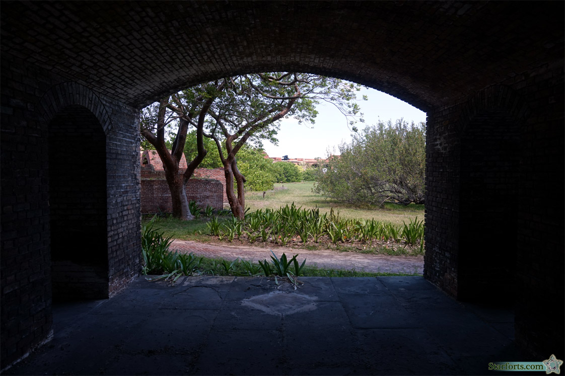 of a casemate, ane you're treated to the sight of Fort Jefferson's ee-NOR-mous parade ground, which today is full of green plants and white birds.