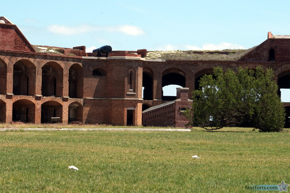 Across the parade ground to the fort's north, we catch our first glimpse of Fort Jefferson's hot shot furnace! As well as the fort's predominant life form, which was those white birdies in the grass. I was most definitely looking forward to visiting with the hot shot furnace, but I was in no hurry to get to it.