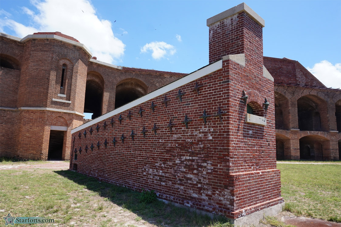 And the hot shot furnace is finally within our grasp! I knew it was here, but I wasn't aware that it had recently been refurbished: The online pix I had seen showed it in a somewhat dilapidated, pre-rebuilt state. Something else for which I wasn't ready was its size! I've visited several hot shot furnaces in the United States and Canada, but no other comes anywhere close to the size of this monster! I sometimes take pictures from close to the ground to make an object seem more heroic and vast, but I was standing when I took this shot! The sign Red Hot Cannonballs sits helpfully next to it. |