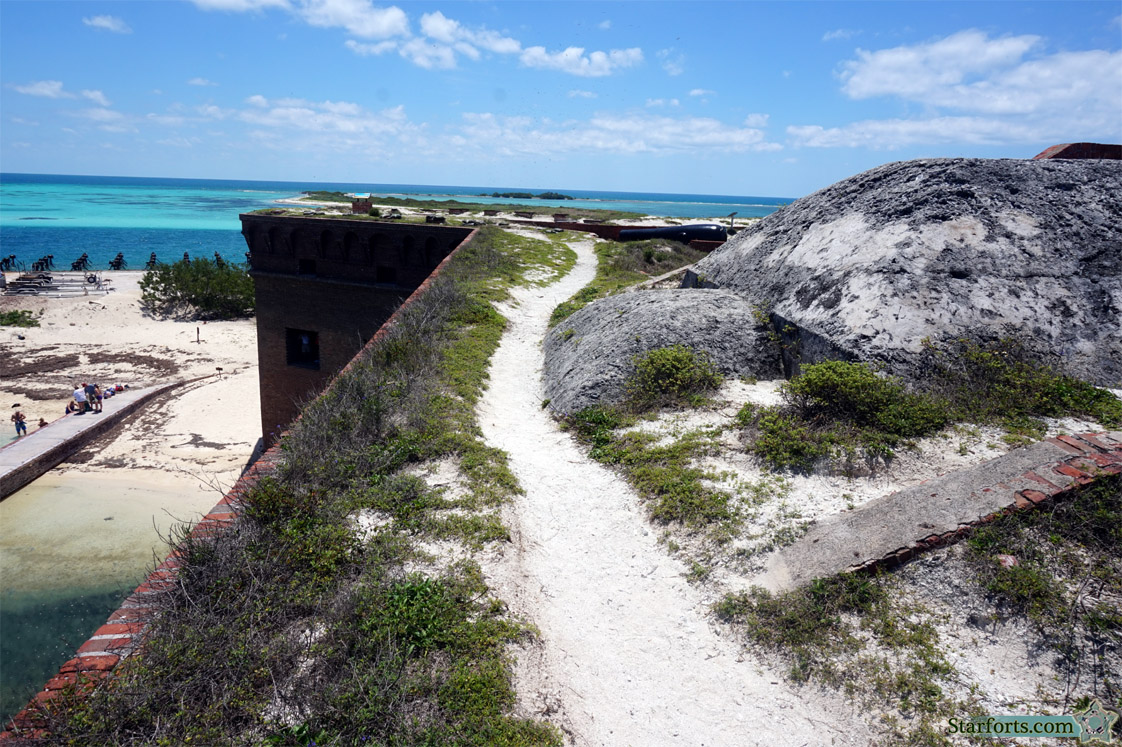 What was unfortunate about the modernization programs that American starforts went through in the latter decades of the 19th and early 20th centuries is that...those modern improvements were hideous. Starfort and polygonal fort construction, while by its nature utilitarian, also had a sense of style. The masons who built those forts were artists of a sort, and at the very least, the clean symmetry of brick or granite construction was a thing of beauty. But the additions made at the end of the century were all about utility with zero consideration for appearance. Case in point: The soulless pile of concrete on the right.