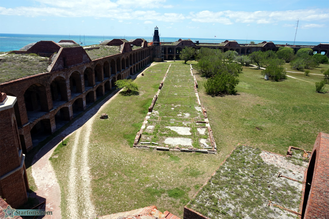 Gazing o'er the remains of the soldiers' barracks, along Fort Jefferson's west wall. The lighthouse lovers amongst us will be pleased to see that we are approaching that lighthouse, but they'll have to suffer through several more pictures of boring starfort parts before we get there.