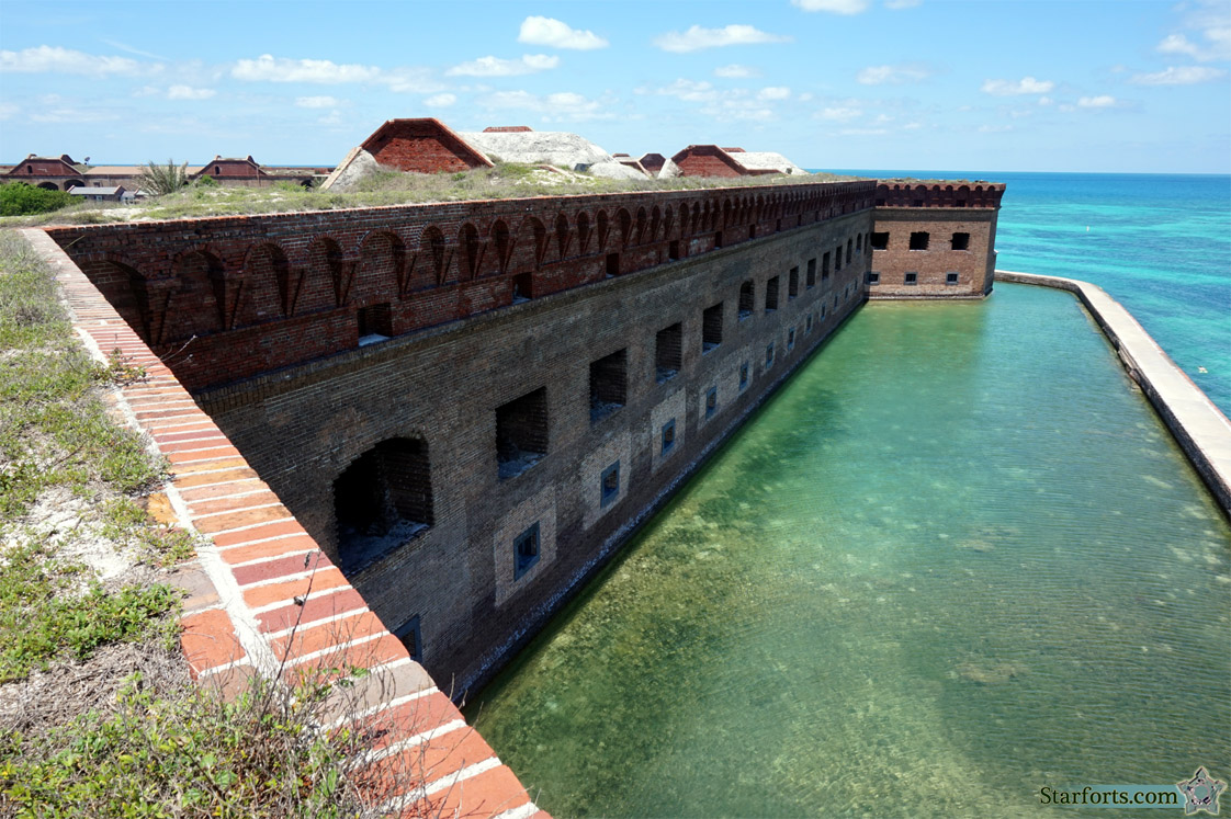The northwest curtain wall. There is no lack of inspiring views at Fort Jefferson. Oh, but this is a fine opportunity to point out the faux gunports! See that row of openings along the top of the wall, just under the sexy ornamental masonry at the parapet? Those openings served no purpose, other than to convince potential attackers that there was a third tier of guns just waiting to pulverize them from the fort's walls. Was that effort really necessary? Were there lots of naval captains of European nations who would have received orders to attack any fort with only two tiers of guns, but run screaming from any fort with three tiers of guns? "Uuuh Captain, what kind of guns could possibly be behind such oddly-placed gunports? Are the gun crews lying down next to them?"