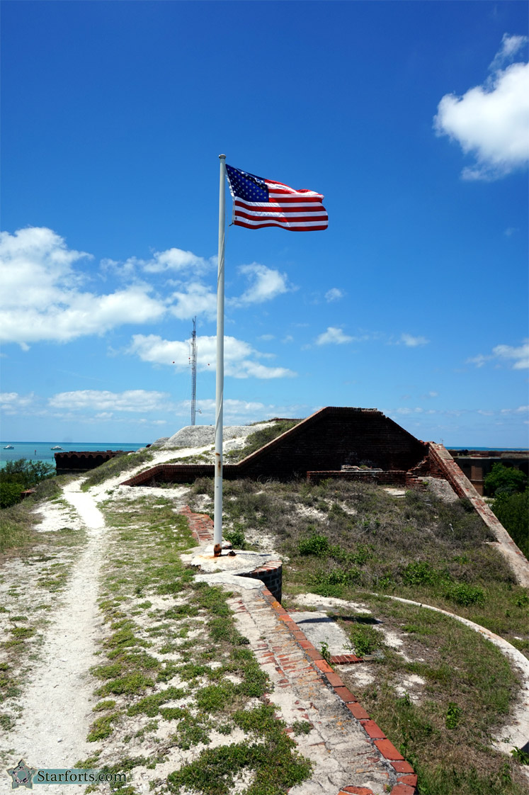 Hey look, it's a flag! That's a nice flag right there. The stars 'n' stripes has an inextricable relationship with starforts, in that each time a new US flag is approved (historically this has happened when there's a need to add more stars, representing more states having been admitted to the union), the first place it's displayed is over Fort McHenry in Baltimore, Maryland...and only rockets (with a red glare) and bombs (bursting in air) can legally illuminate this new flag! Okay I made that last part up, but the rest of it is true. |