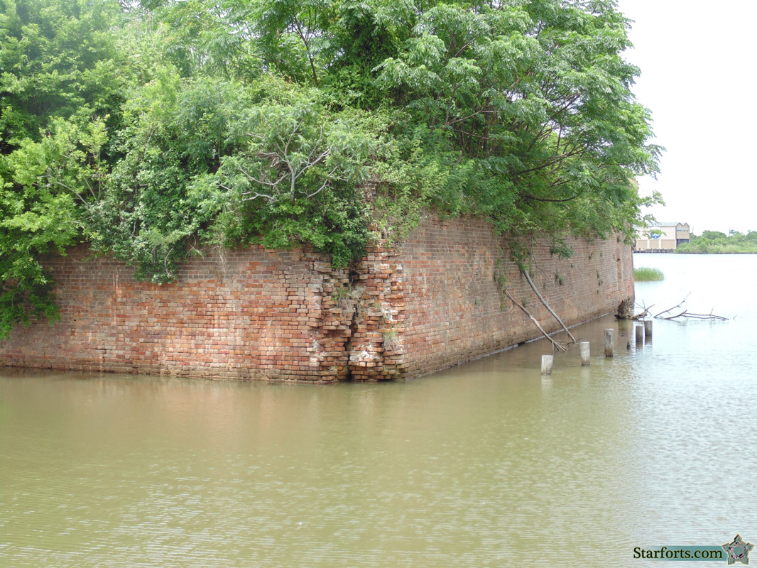 The tip of Fort Macomb's southern bastion! Locals were by this point surely familiar with the steady "plop, plop, plop"ping sound of sacred starfort bricks dropping into the water.