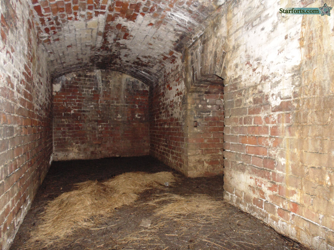 An interior casemate (powder magazine?) with a bed of comfy straw. There