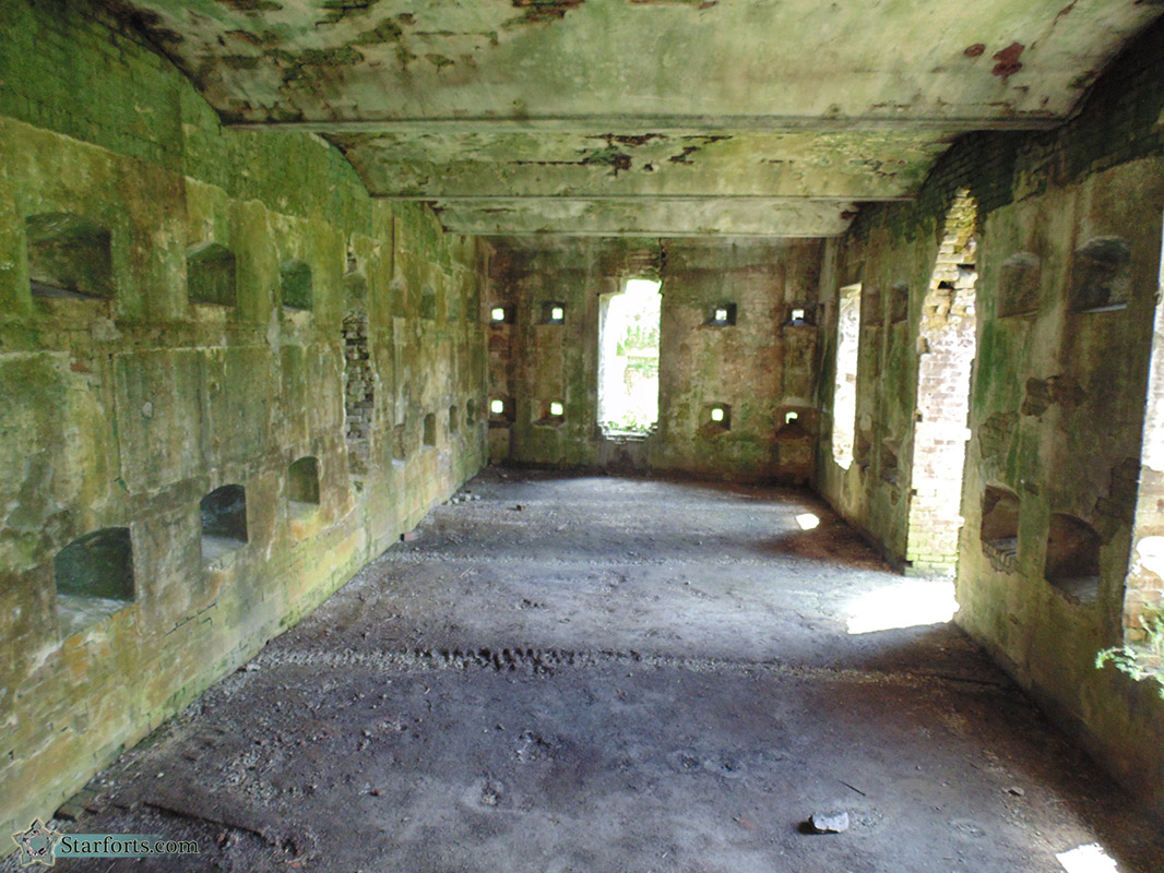 The Citadel's southernmost room. Pretty much like the other rooms. There would have been a riser betwixt the two horizontal rows of musket embrasures along the Citadel's walls, so that each and every hole could have a musket sticking out of it.