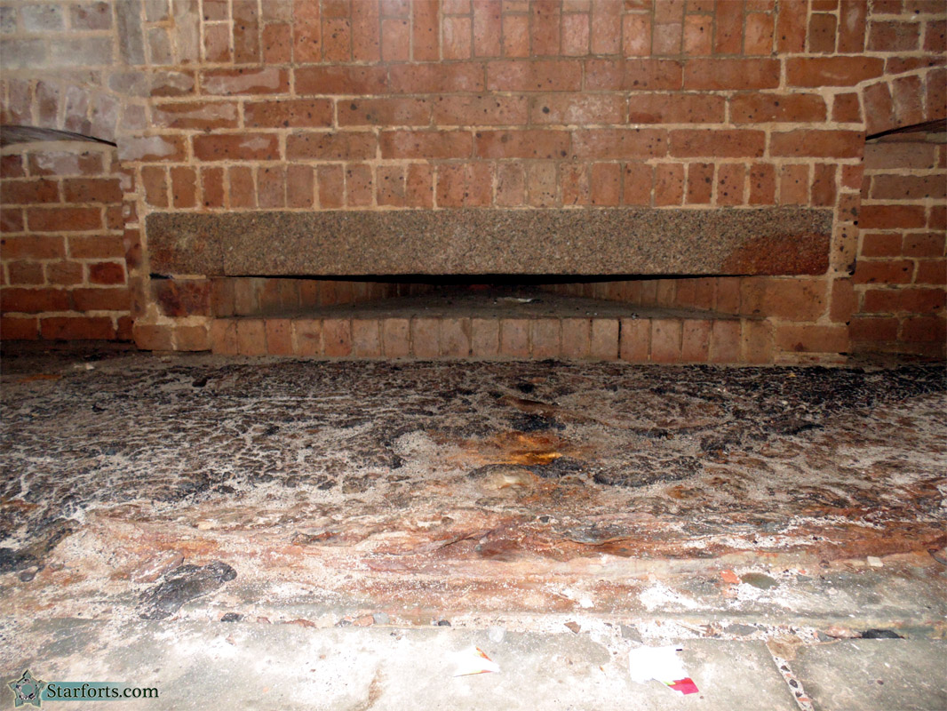 Anchoring each gun to its embrasure was an iron tongue, which was connected to a pin at the end of this opening, beneath the shutters.