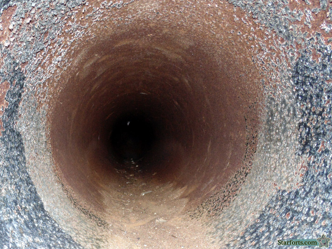 Interestingly, you can see the remains of three different coats of black paint at the bottom of this shot...looks like Rodman Gun painters are getting progressively less enthusiastic about getting down deep in there!