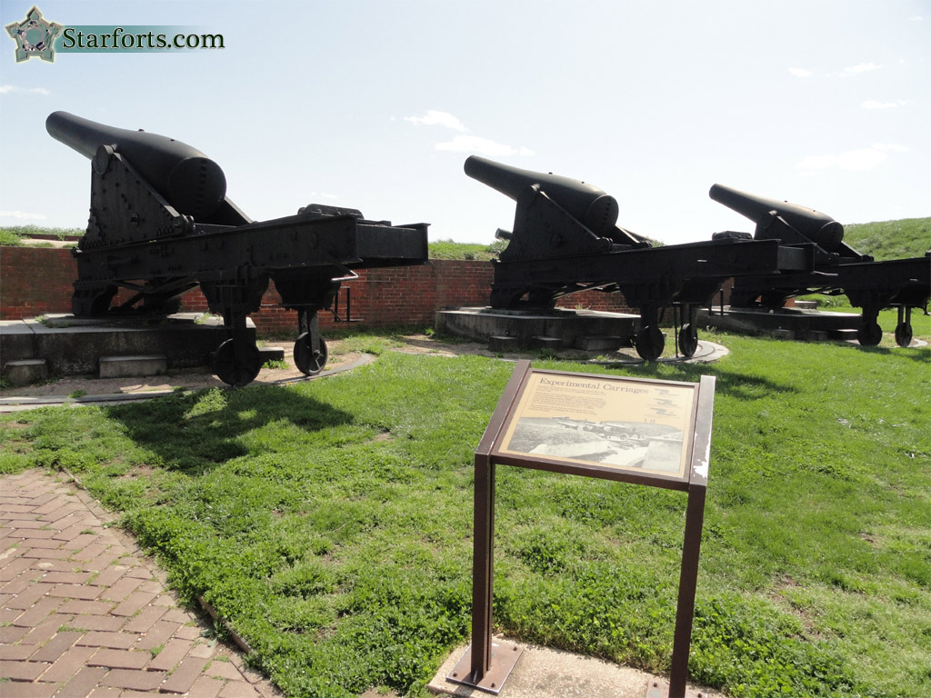 For those of you who are tired of looking at old cannons, here are some more old cannons! Efforts were always in progress to try to do away with the ridiculous process of repositioning cannon after firing: These three 10-inch Rodmans have experimental carriages developed around 1888 with an early hydraulic system that was designed to gently, conveniently ease the gun back into firing position after each shot.