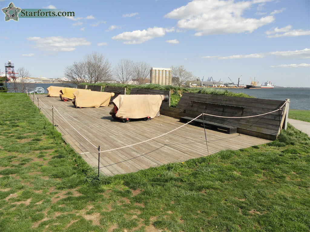 This is what's left of the original Upper Water Battery. I believe reenactors periodically uncover the guns and play with them BUT sadly this did not happen while I was there. In 1814 Fort McHenry had Upper and Lower Water Batteries, manned by sailors from the Chesapeake Flotilla. The idea behind the Water Battery concept was that guns along the waterline would "skip" balls into attacking ships' hulls, while cannon on a fort's bastion would decimate ships with plunging fire. All of the original Lower Water Battery was replaced in the 1840's by what is now the Outer Battery.