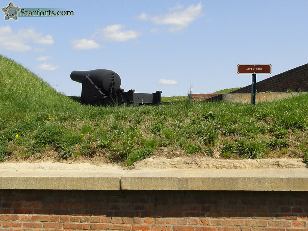 A big ol' 15-inch Rodman Gun atop the Ravelin. The "Area Closed" sign made my heart sink a great deal, as I envisioned being forbidden from doing any sort of exploratory climbing at Fort McHenry, a cruel shock after clambering gleefully over, under and through various other historical forts. As it turned out, there are some opportunities for climbing and exploration at Fort McHenry, but, being the huge tourist attraction that the fort is, one's opportunities for getting one's knees dirty are pretty restricted.