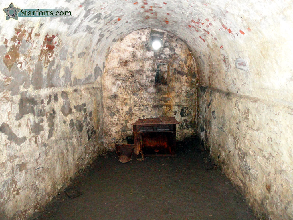 Three of these casemates are skinny, just about 7 feet wide, but still around 40 feet long. These were used at times for storage and as prison cells, and today mostly just house varying collections of detritus. In 1864, 216 Confederate POWs were imprisoned in these casemates, along with 55 Union deserters and 11 other "offenders."